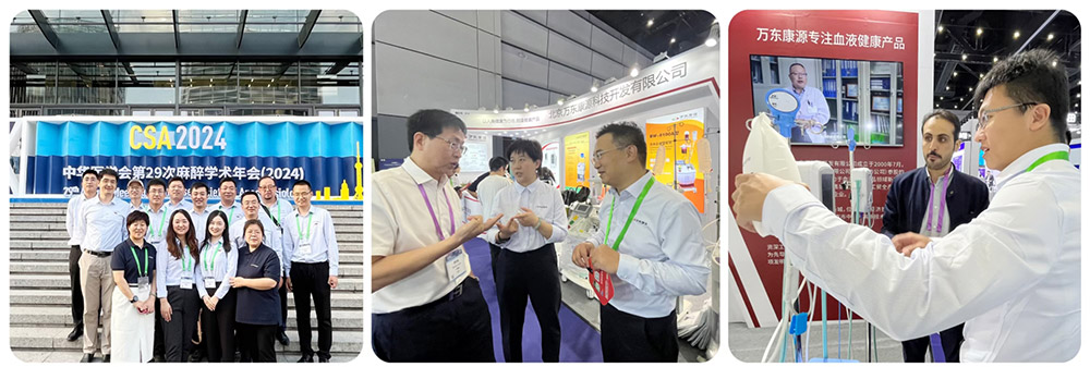 万东康源作为国内较早研发生产“自体血液回收机”产品的企业参加此次盛会,重点展示了公司核心产品BW系列自体血液回收机及输血输液加温仪等,吸引了众多参会专家的目光。专家们对我公司产品表现出浓厚兴趣,纷纷驻足观摩,并与带队参展的公司总裁靳春亮进行了深入交流,给予了肯定。